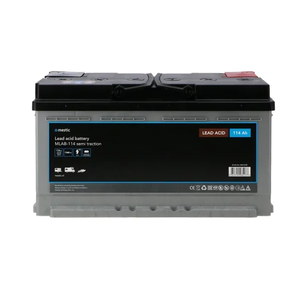 Batterie Mestic pour camping-car, de type décharge lente 12 V. Conçue pour alimenter durablement vos équipements embarqués lors de vos voyages.