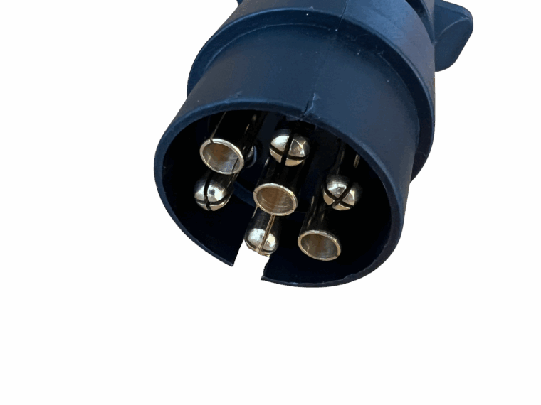 La fiche 7 broches permet de raccorder remorques, caravanes et porte-vélos au standard européen 7-pin 12 V (12N). Corps robuste, contacts métalliques, serrage par vis et presse-câble arrière pour un montage simple et fiable.